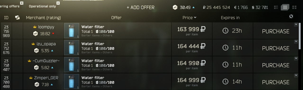 시즌초반에 2~3만원정도 하는 워터필터를 100개 200개 정도 사놓고, 계속 슈퍼워터, 문샤인을 만드는 것입니다.