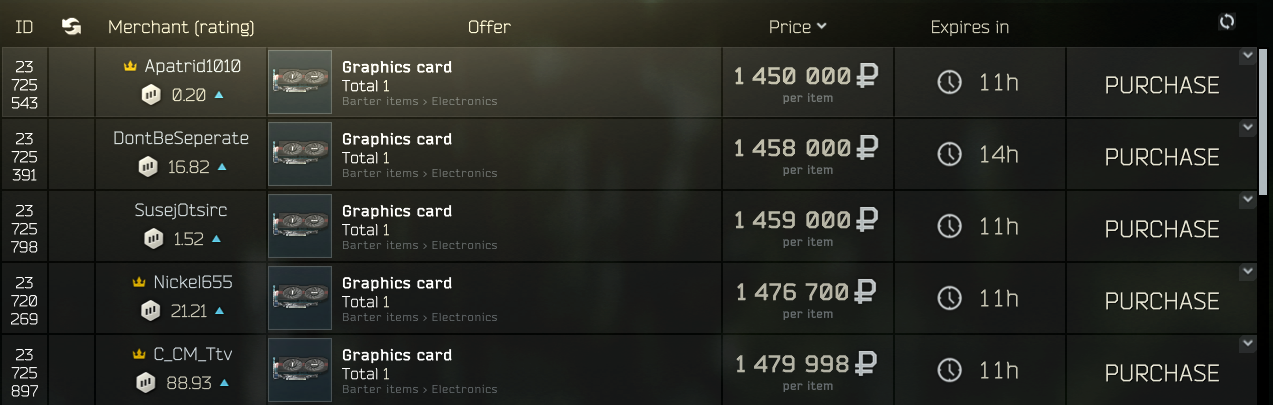 현재 그래픽 카드의 가격이 개당 150정도 하는데 시즌 초에는 약 30만원 이었습니다.