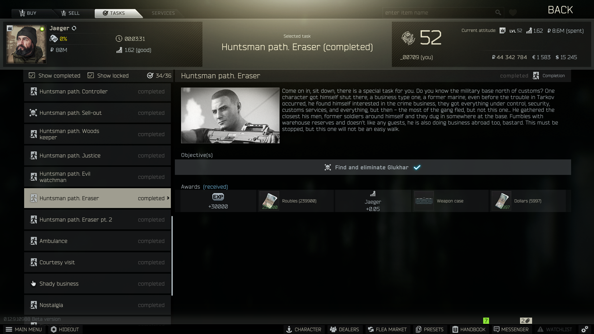 예거의 huntsman path. eraser 퀘스트 입니다.