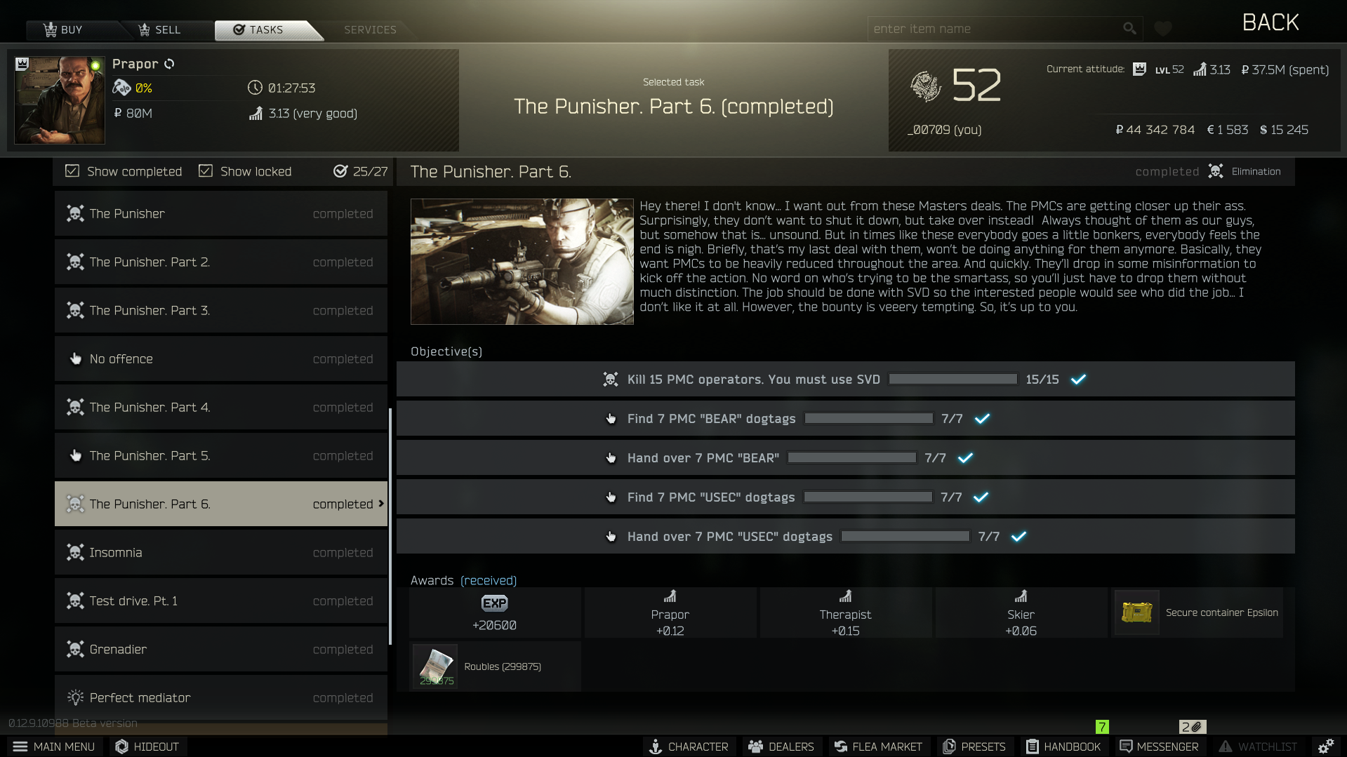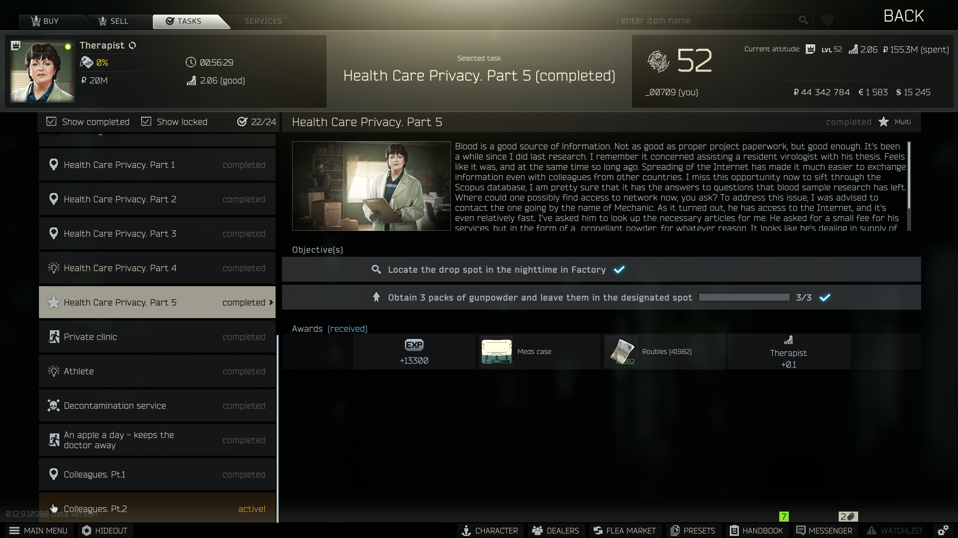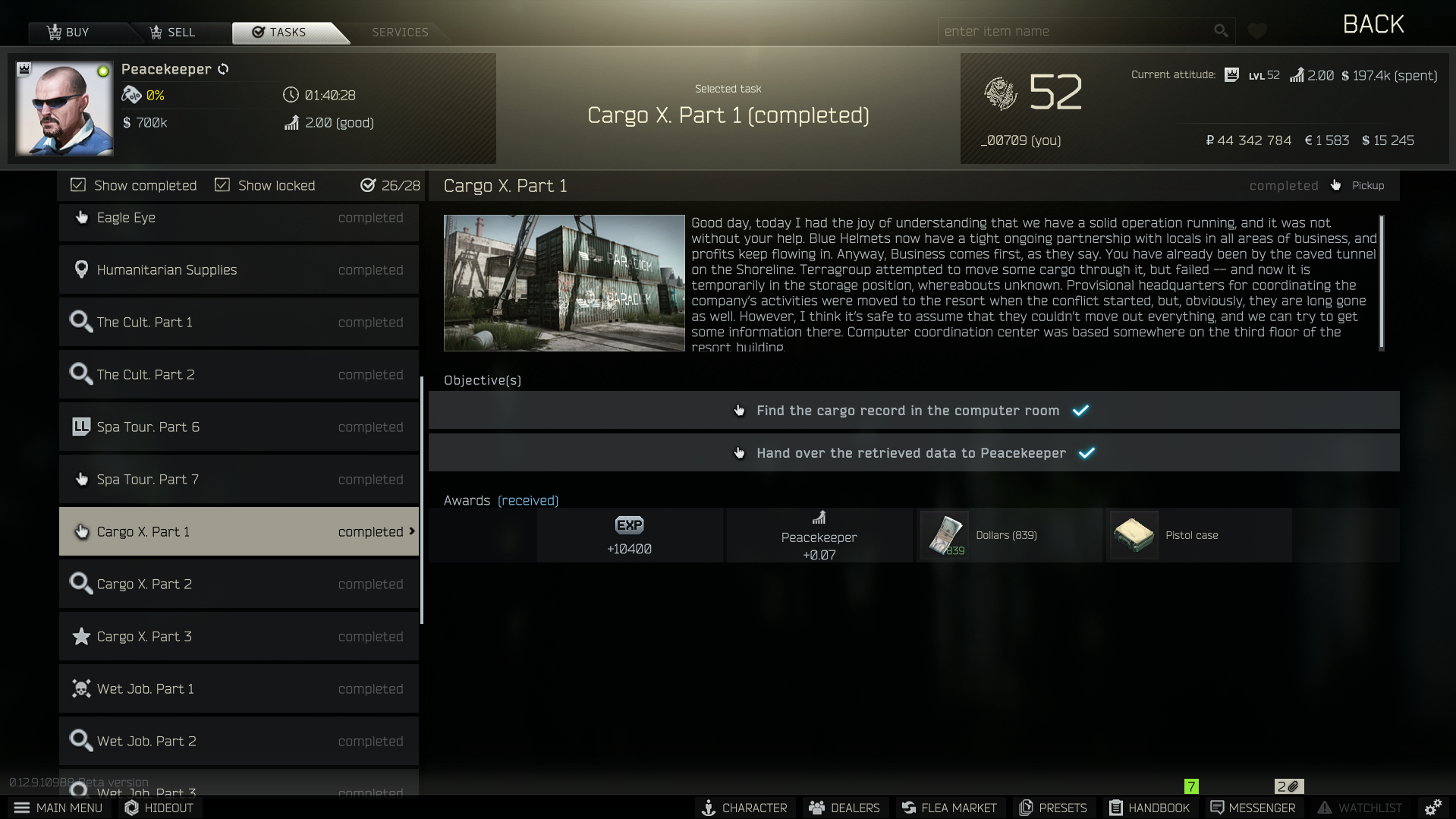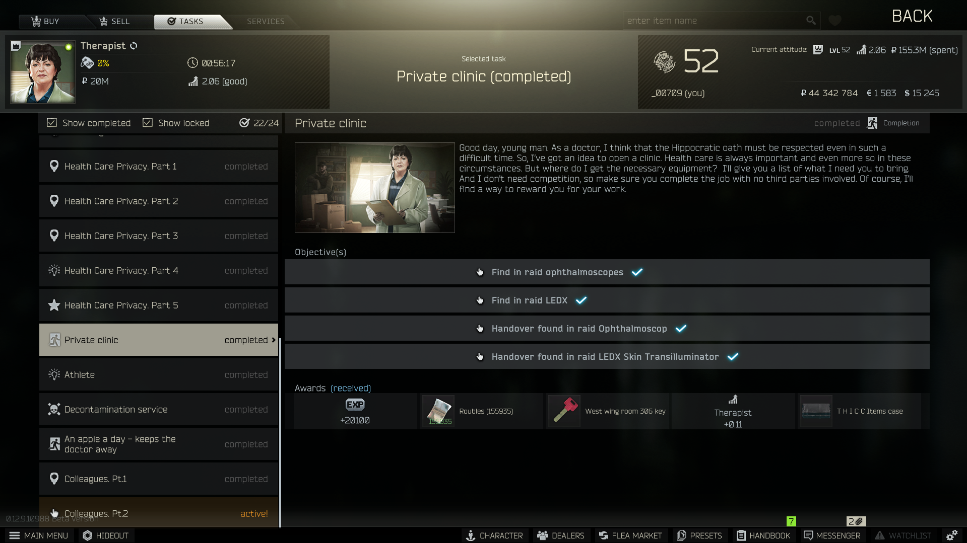 private clinic의 퀘스트를 해결하게되면 약 2800만 루블 정도하는 띡 아이템 케이스를 얻을 수 있습니다.
