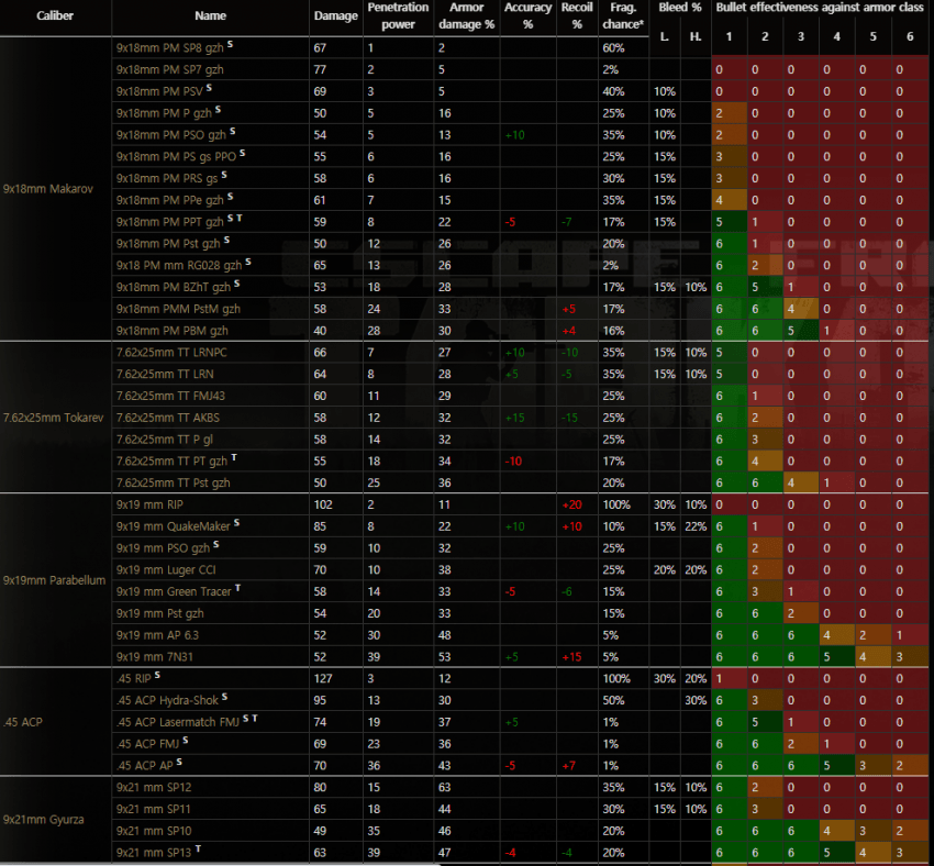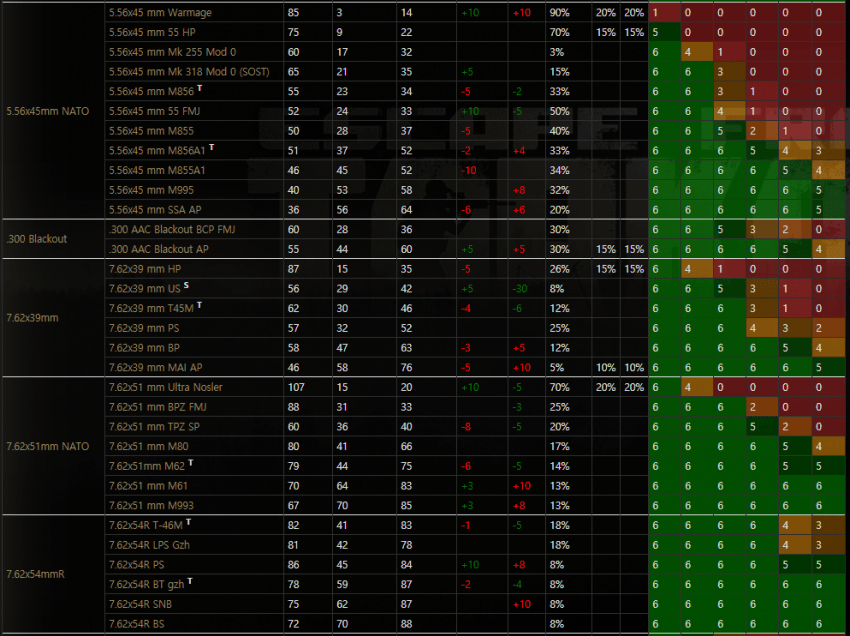 [타르코프 총알표 2022] 타르코프 12.12 탄약 최신 간단정리 / 타르코프 총알표 2022