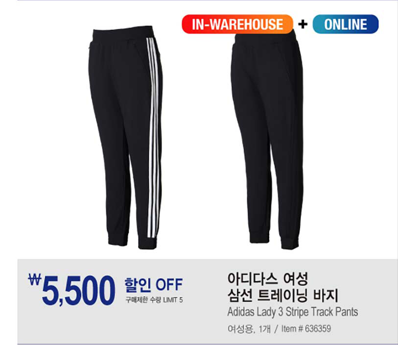 아디다스 여성 삼선 트레이닝 바지 - 5,500\