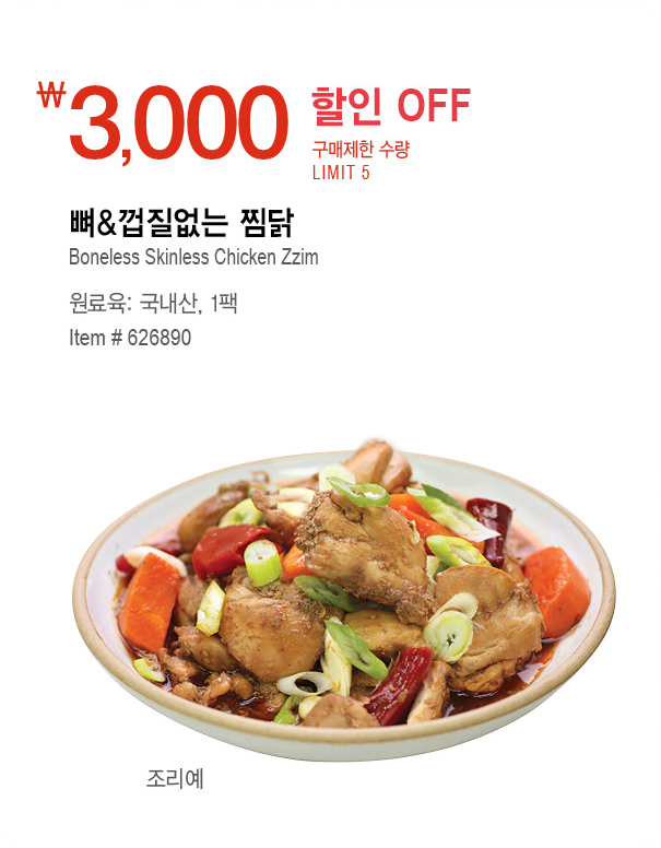 뼈&껍질없는 찜닭 - 3,000\