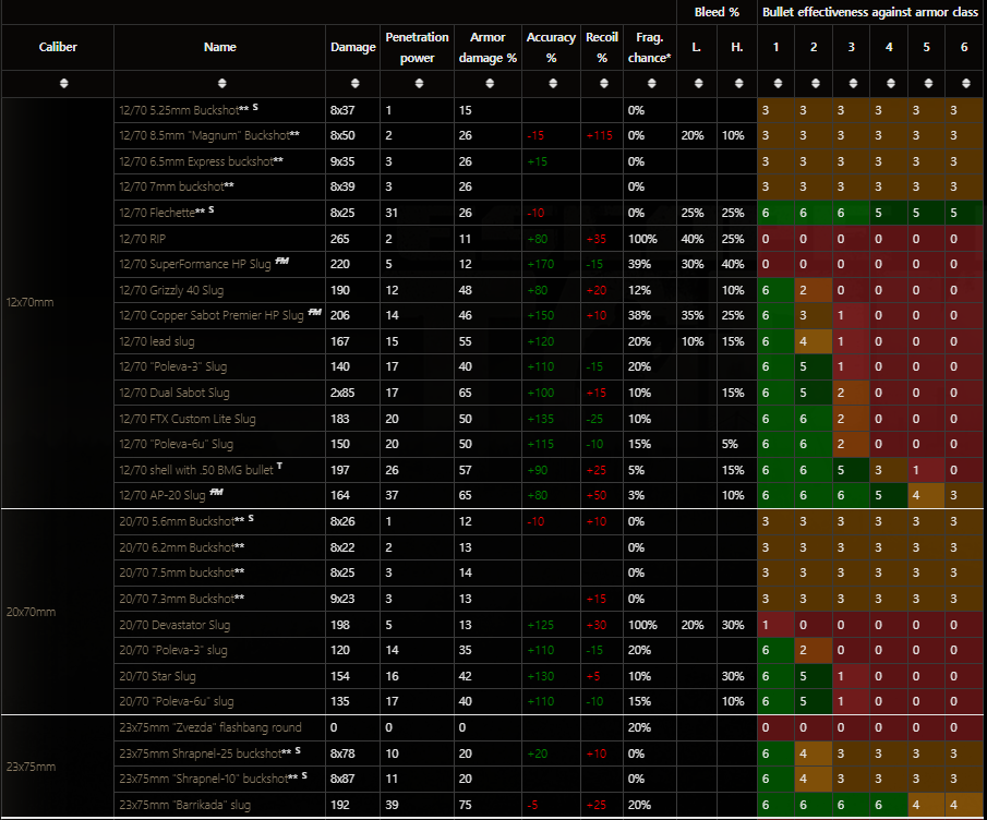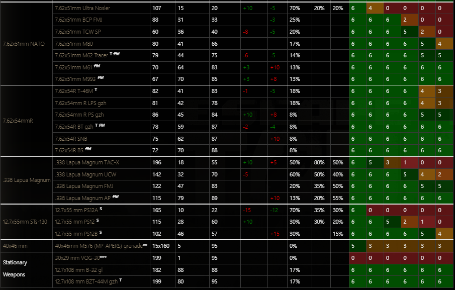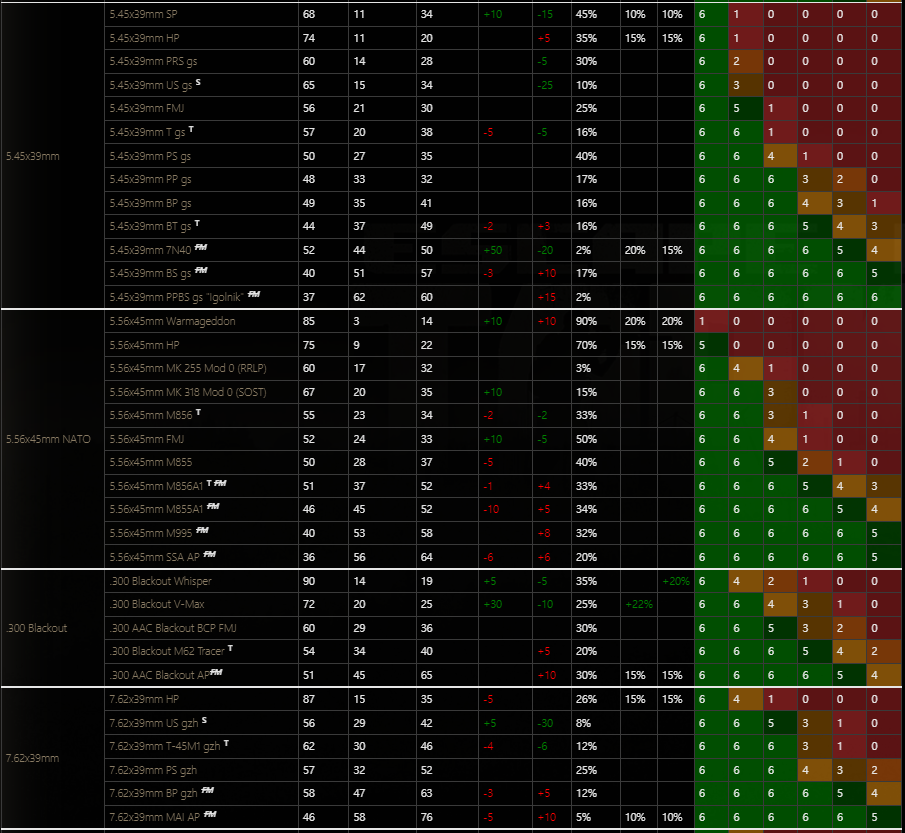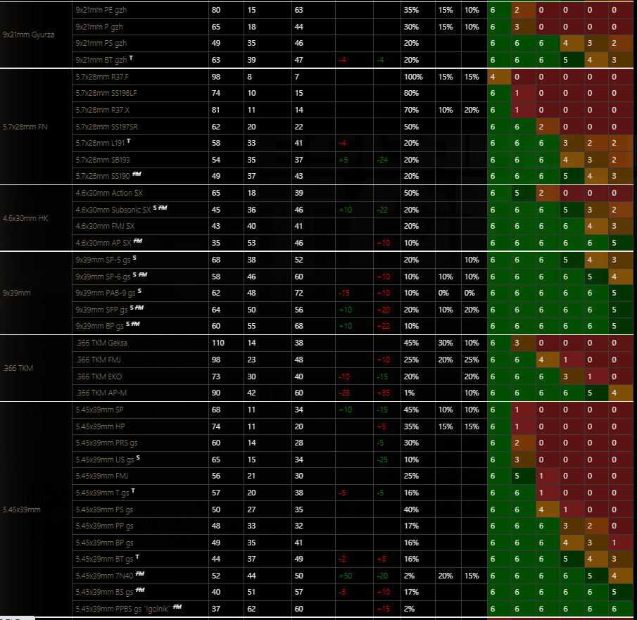 [타르코프 총알표 2022ver] 타르코프 12.13 총알표 / 타르코프 12.13 탄약 간단정리
