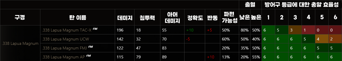 최근 초기화가 되어서 새롭게 추가된 총기와, 탄 때문에 2022년 12.13 최신 버전 총알 표를 업데이트하게 되었습니다.